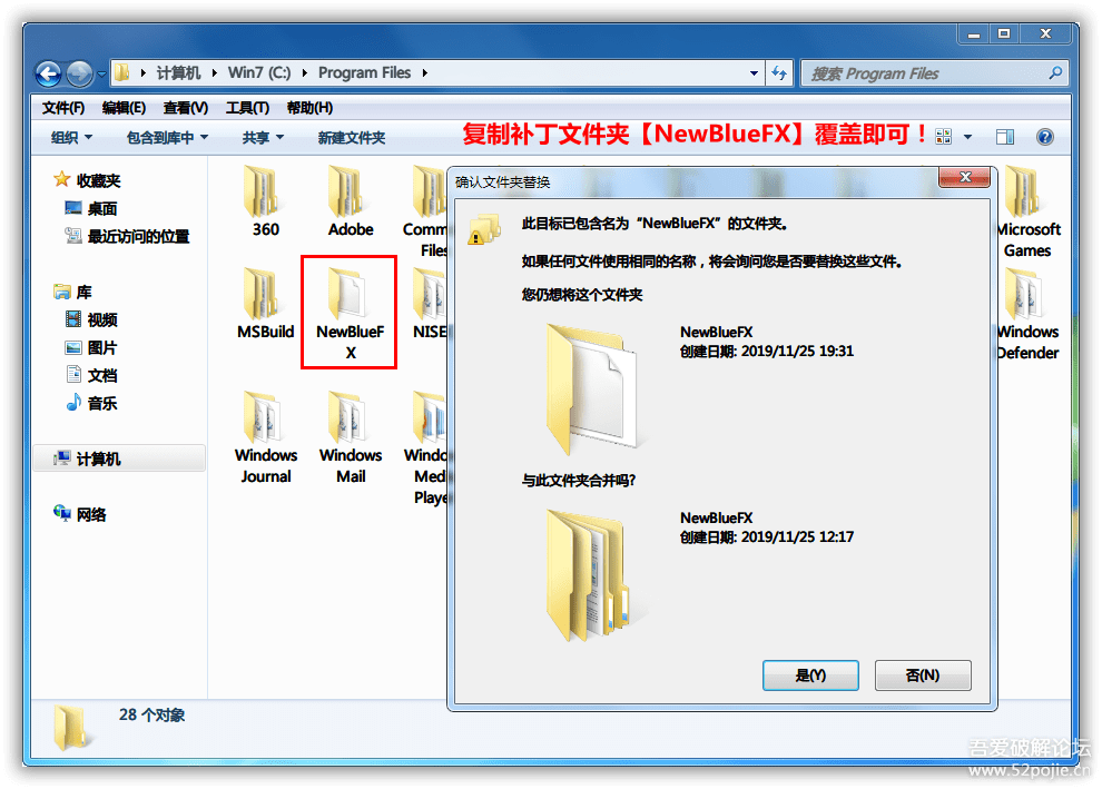 2、复制补丁目录【Fix】中的【NewBlueFX】到【C:\Program Files\】替换即可!