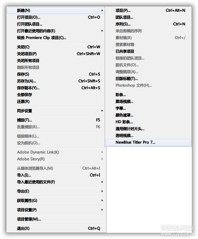 3、PR调用点击【新建】选择【Newblue Titler】即可!